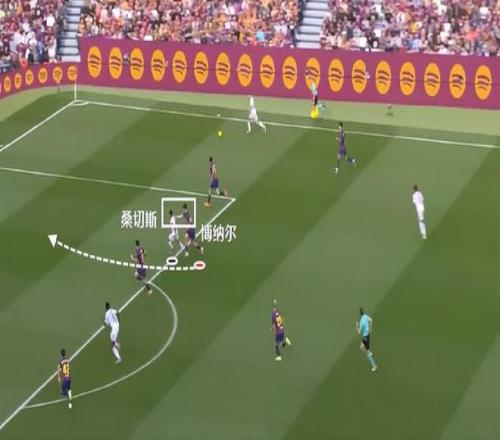 博纳尔在比赛中有很多的前插参与进攻,传球给到莱万之后,他还有一个往禁区侧翼跑的移动。